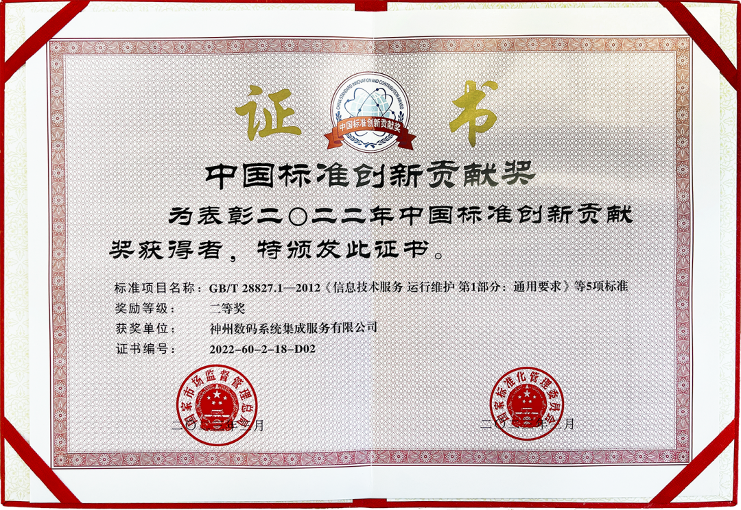 近日,国家市场监督管理总局、国家标准化管理委员会发布了2022年中国标准创新贡献奖获奖名单,神州信息与中国电子技术标准化研究院牵头完成的GB/T 28827.1—2012《信息技术服务 运行维护 第1部分:通用要求》等5项标准获标准项目奖二等奖,神州信息副总裁马洪杰作为主要完成人亦获奖项。