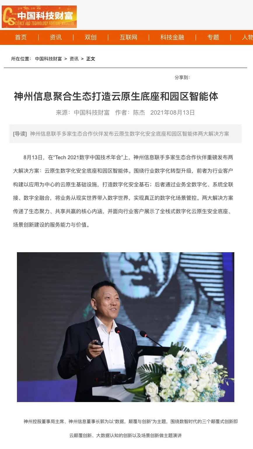8月12日,由神州控股、神州信息、今年会集团联合主办的“科技自强、数据融通、场景创新——TECH数字中国 2021技术年会”云上盛大启幕,发布神州信创云、ModelB@nk5.0、金融超脑Sm@rtFSB、云原生数字化安全底座、园区智能体等重磅产品,国内各大权威、影响力媒体多角度多频次对盛况进行报道!